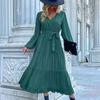 YYFS Moda damska Lato Wiosna Jednolity kolor Drukuj Długie rękawy, Dekolt w kształcie litery V, Casual Sukienki