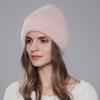 Damska zimowa czapka z włosiem królika, dzianinowa, ciepła, wszechstronna wełniana czapka ze srebrną nicią
