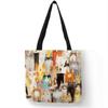 Cute Cat Printed Women Tote Bag Tote Shopping Bag Casual Travel Beach Bag Linen Tote Bag with Printed Logo