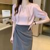 Letnia koreańska moda szyfonowe koszule elegancka luźna perłowa bluzka z dekoltem w serek damska 2021 damska z krótkim rękawem Slim plisowane topy 15202