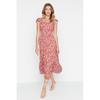 Sukienka midi z falbankami i kwiatowym wzorem, z krótkim rękawem i kwadratowym kołnierzykiem