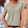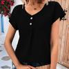 Spring and Summer European and American Style Casual Women's Top Solid Twist Button Fashion Short Sleeve Loose Top
