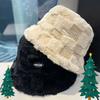 Japoński kapelusz rybaka z jagnięcego polaru w kratę Damski jesienno-zimowy, gruby, ciepły kapelusz z literami Wiadro