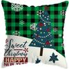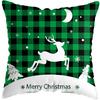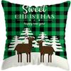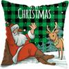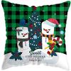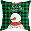 Christmas Theme Green Plaid Santa Snowman Print Pattern Cushion Cover Home Sofa Decor Throw Pillow Cover 45x45cm