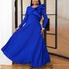 AOMEI Plisowane sukienki dla kobiet O Neck wysokiej talii patchworkowa siateczka z długimi rękawami przepuszczalne tiulowe falbany suknie wieczorowe