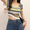 Letnia moda damska w kolorowe paski, dzianinowy krótki top, luźny T-shirt Y2k