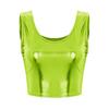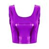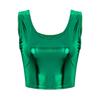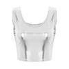 Modna błyszcząca kamizelka Tank kobiety dziewczęta wokół szyi bez rękawów metalowe obcisłe krótkie bluzki krótki T-shirt
