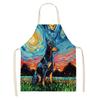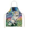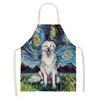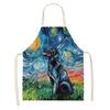 Fartuch w stylu malarstwa olejnego gwiaździste niebo tło pies lniany bawełniany kreatywny fartuch rodzic-dziecko kuchnia rodzinna