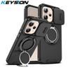 KEYSION Odporny na wstrząsy futerał pancerny dla iPhone 15 Pro Max 15 Ultra miękki silikon + PC stojak z pierścieniem obudowa telefonu dla iPhone 14 13 12 11 Pro