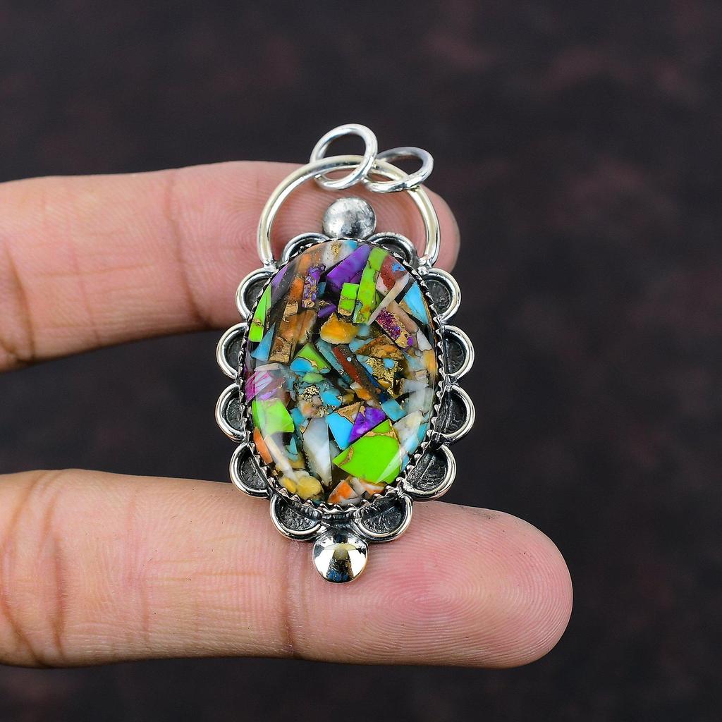 Fiesta Kingman Turquoise Pendant Handmade Natural Gemstone Pendant 925 Sterling Silver Pendant Multi Copper Turquoise Pendant Silver Jewelry