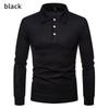 Jesienno-zimowa męska koszulka polo Modna jednokolorowa koszulka polo Slim Fit Casual z długim rękawem