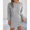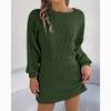 Seksowna dzianina skręcone rękawy lampionowe swetry sukienki jesienno-zimowa damska sukienka elegancka sukienka z okrągłym dekoltem solidna dzianina sukienka 29889