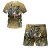 Estetyczny ptak i roślina 3D Print męskie koszulki z okrągłym dekoltem luźna koszulka z krótkim rękawem dwuczęściowy zestaw moda letnia odzież męska