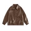 Damska kurtka ze sztucznej skóry z długimi rękawami skręcić w dół kołnierz luźny krój kieszeń na zamek błyskawiczny jednolity kolor Vintage w stylu amerykańskim ponadgabarytowych damski płaszcz damski