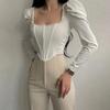Retro kwadratowy kołnierzyk seksowna bluzka damska eleganckie bluzki biurowe z długim rękawem Slim Fit bluzki jednolita bufiaste rękawy koszule damskie eleganckie 30117