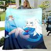 Gawr Gura Hololive śliczne Anime miękki pluszowy koc, flanelowy koc rzut koc do salonu sypialnia kanapa z funkcją spania pokrowiec piknikowy Kid