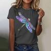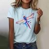 Damska koszulka 3d Dragonfly Printed Girls Top Street O-Neck z krótkim rękawem modna koszulka letnia codzienna koszulka dla kobiet