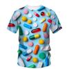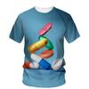 Modne nowe, oryginalność Pill Graphic T-shirty dla mężczyzn Casual Artystyczny trend osobowości Zabawne drukowane koszulki z krótkim rękawem i okrągłym dekoltem