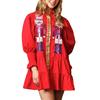 Sukienka Damska Błyszcząca Cekinowa Patchworkowa Rozkloszowana Długi Rękaw Klapa Wzór Kreskówkowy Luźna Długość Nad Kolano Noworoczna Impreza Świąteczna Mini Sukienka