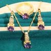 Zielona cyrkonia złoty kolor zestawy biżuterii ślubnej dla kobiet randki kolczyki naszyjnik wisiorek bransoletka pierścionek randki prezenty