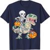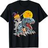 Szkielet jadący mumia dinozaura T REX Halloweenowa zabawna koszulka z dynią