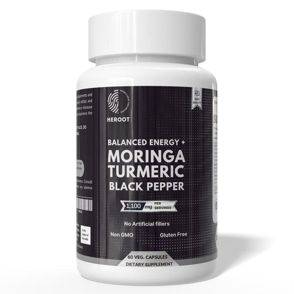 Heroot Kapsułki Kurkuma Moringa i Czarny Pieprz | Mieszanka Ziołowa | 1100mg
