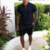 Wiosenne garnitury męskie T-shirt z krótkim rękawem i zamkiem błyskawicznym 2-częściowy zestaw Casual, z kieszeniami, krótkie spodnie dresowe Męskie sportowe zestawy dwuczęściowe
