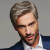 Męskie, brązowe, szare, krótkie włosy z rozcięciem na boku