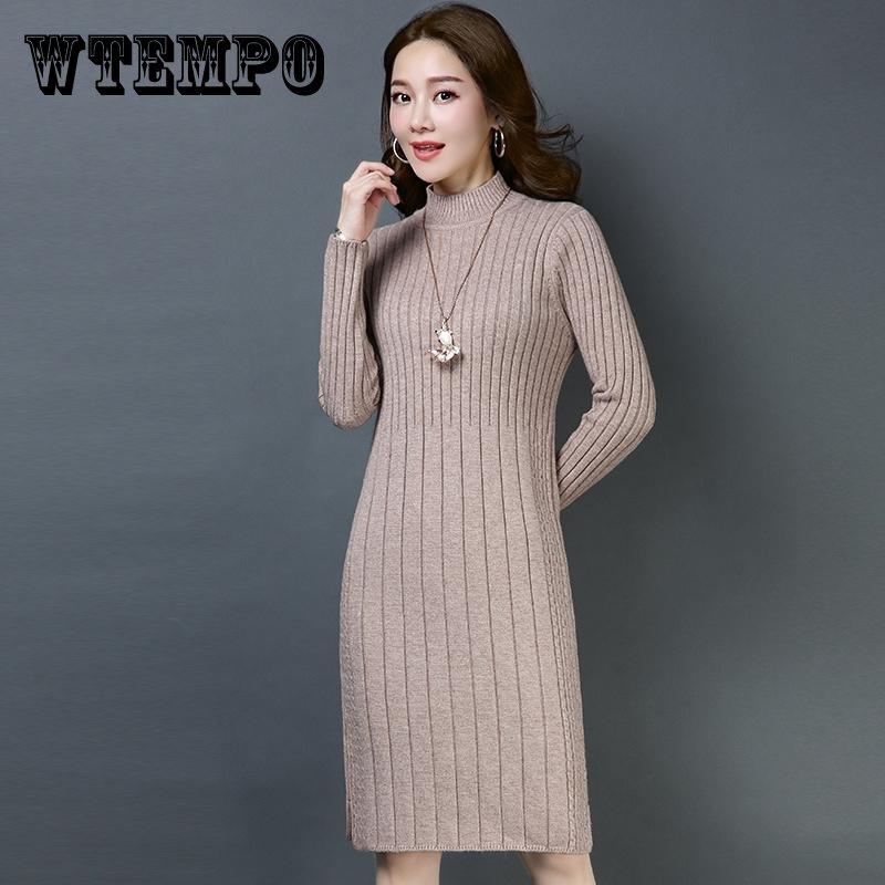 Damska dzianinowa sukienka Jesień Zima Vintage Ladies Slim Sweter Dress Długie sukienki z dzianiny