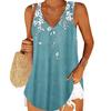 Damska kamizelka bez rękawów z kwiatowym nadrukiem, dekoltem w kształcie litery V, średniej długości, luźna, na co dzień