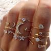 iF ME Zestaw pierścionków w stylu retro z cyrkonią księżycowe serce kwiatowe złote srebrne pierścionki dla kobiet biżuteria akcesoria