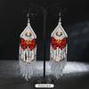 Ręcznie robione kolczyki z długimi frędzlami z koralików ryżowych, boho retro niszowe, spersonalizowane i stylowe kolczyki wakacyjne