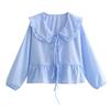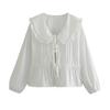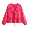 Koszula letnia casualowa z klapami, latarnią, długim rękawem, zapięciem na sznurowanie, jednolitym kolorem, falbaniastym brzegiem, luźnym krojem, damska koszula z górną częścią