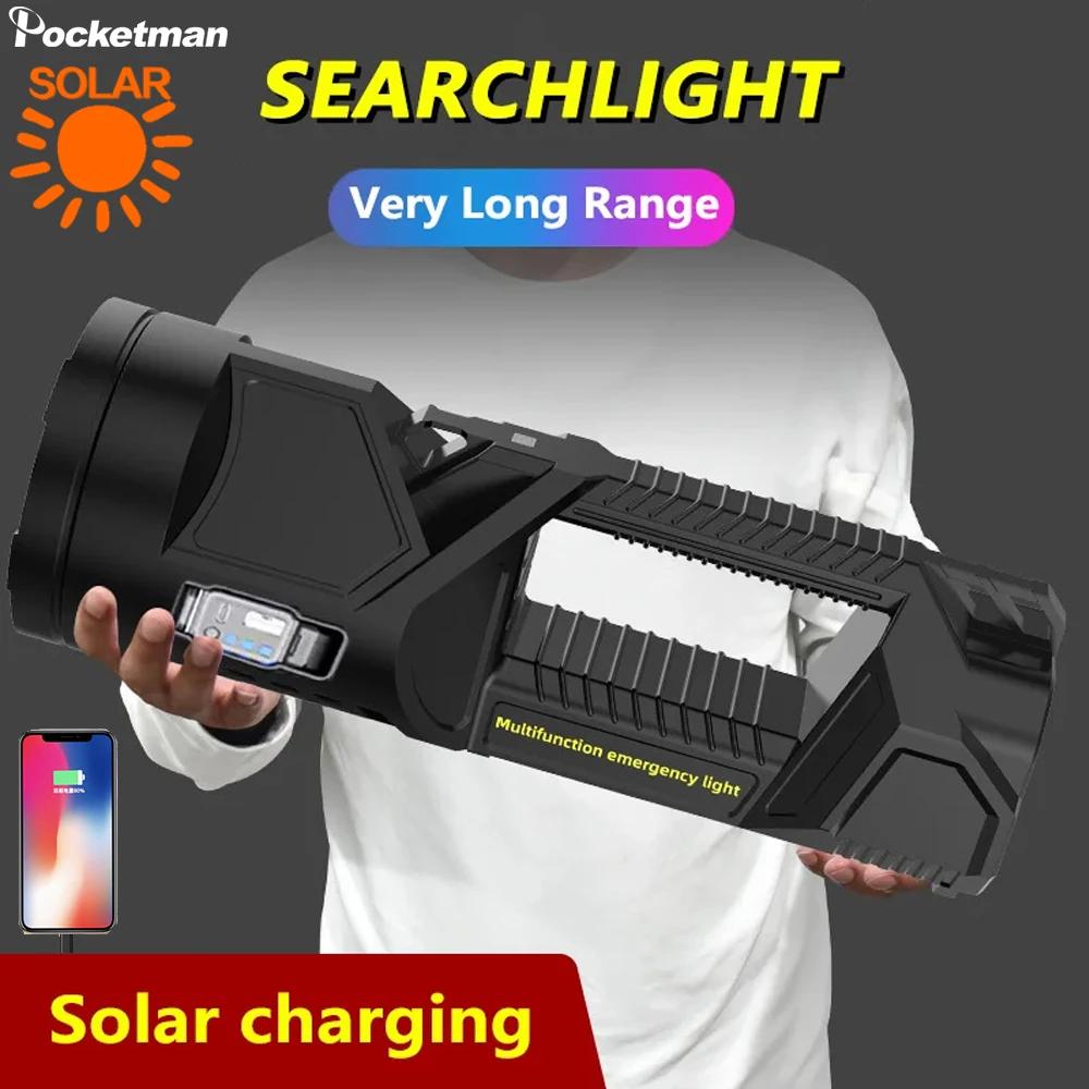 Powerful Solar LED Searchlight Outdoor Multifunction USB Rechargeable P70 Work Light LED Flashlight Long Range Camping Lantern