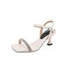 Krazing Pot Pełnoziarnista skóra Peep Toe Szpilki Wysokie Obcasy Kryształowe Koraliki Letnie Buty Rozmiar 44 Rozmiar 43 Damskie Sandały