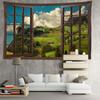 Okno Wzgórze Chatka Krajobraz Gobelin Wisząca na ścianie Naturalny krajobraz Salon Sypialnia Estetyczny wystrój pokoju Tło Tkanina