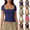 Y2K Lato Nagi Krótki Odzież Damska Dopasowany Krój Kwadratowy Dekolt Krótki Rękaw T-shirt Przędzowy Top