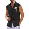 Męska letnia koszula bez rękawów z nadrukiem hawajskim Męska luźna koszula bez rękawów z guzikami