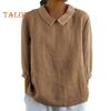 Damska koszula z kołnierzykiem dla lalek 3/4 rękawy, pulowery, jednokolorowe, luźne, cienkie, koszulowe topy, codzienne noszenie