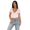 Seksowne koronkowe koszulki z krótkim rękawem dla kobiet, koronkowe przezroczyste siateczkowe topy crop streetwear