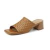 Krazing Pot Naturalne skórzane podstawowe stylowe muły z odkrytymi palcami średnie obcasy letnie buty rzymskie tkane zdobienie damskie sandały