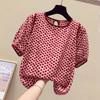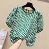 ZANZEA Damska bluzka z okrągłym dekoltem i nadrukiem w kropki, z pół rękawa
