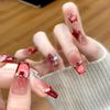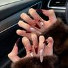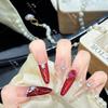 100% HANDMADE Long Coffin Shape Fake Nail set with glue Retro hottie red wine heart agate press on nails acrylic Fake Nails Reusable Fake Nails