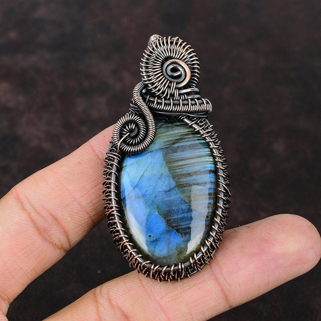 Labradorite Pendant Copper Wire Wrapped Pendant Handmade Jewelry Natural Gemstone Pendant Unique Copper Design Jewelry Labradorite Pendant