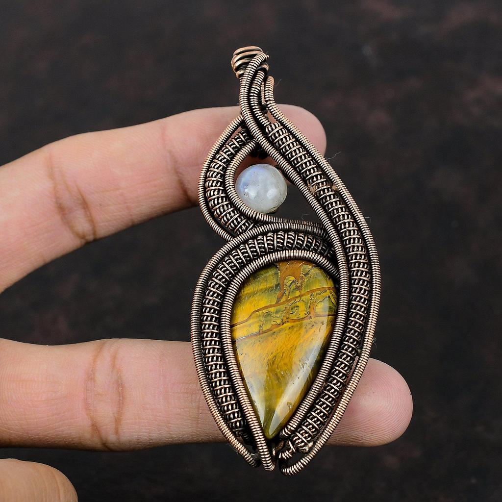 Nellite Pendant Copper Wire Wrapped Pendant Natural Rainbow Moonstone Pendant Nellite Gemstone Jewelry Gift For Her Handmade Copper Jewelry