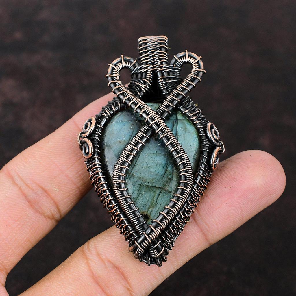 Wisiorek z labradorytu owinięty drutem miedzianym Biżuteria Ręcznie Robiony Wisiorek Biżuteria z labradorytu Na Prezent Owinięty Kamień Szlachetny Wisiorek Unikalna Miedziana Biżuteria