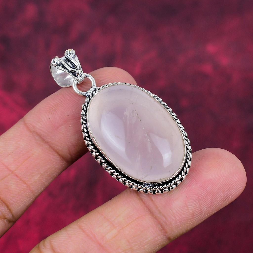 Wisiorek z różowego kwarcu, ręcznie robiony, najnowszy projekt biżuterii, 925 solidny wisiorek z kamieniem szlachetnym, prezent dla matki