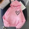Damska bluza z kapturem w stylu koreańskim, pluszowa, z nadrukiem w kształcie serca, luźna, swobodna, parowa bluza z kapturem, jesień i zima, nowość
