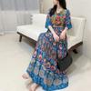 Damska letnia sukienka w stylu etnicznym haftowana, klasyczna stylowa turystyczna wakacyjna bawełniana jedwabna sukienka plażowa z kwiatowym wzorem