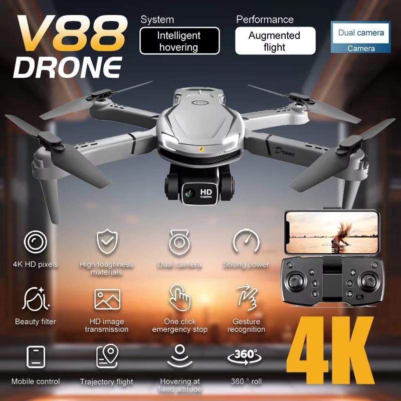 Nowy dron V88 4K HD z podwójną kamerą Fotografia lotnicza Inteligentny zawisający pilot zdalnego sterowania Składany samolot Prezent 360° Toczący się zdalnie sterowany quadrocopter Zabawka dla dzieci